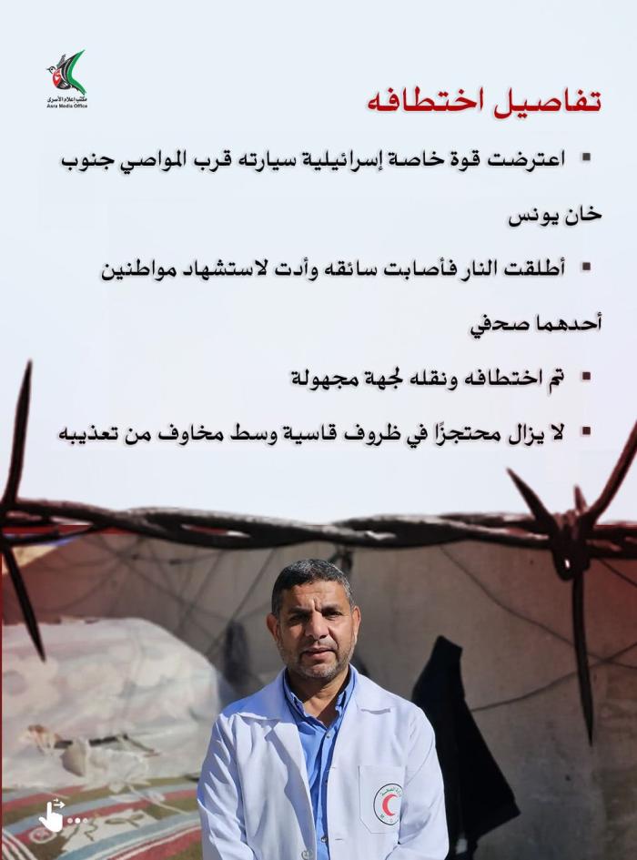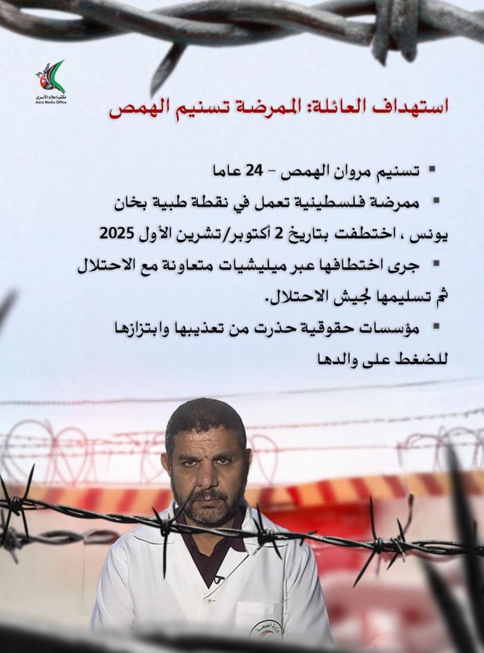 منذ 26 دقيقة المحرر المقدسي أيمن سدر: سياسة التجويع الممنهجة: تقليص الحصص الغذائية بشكل قاسٍ ومتعمد، وتجويع أسرى غزة تحديدًا، لإضعافهم وإبقائهم على حافة الموت البطيء.