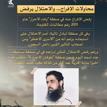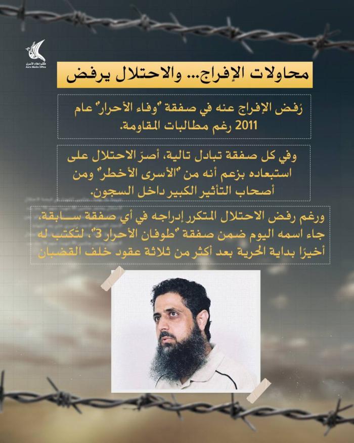منذ 17 دقيقة المحرر المقدسي أيمن سدر: استهداف قيادات الحركة الأسيرة: تصفية ممنهجة واستهداف مباشر دون أي مراعاة لعمر أو مرض أو رمزية.