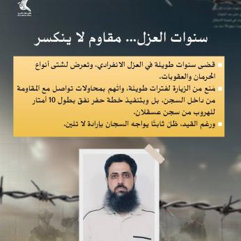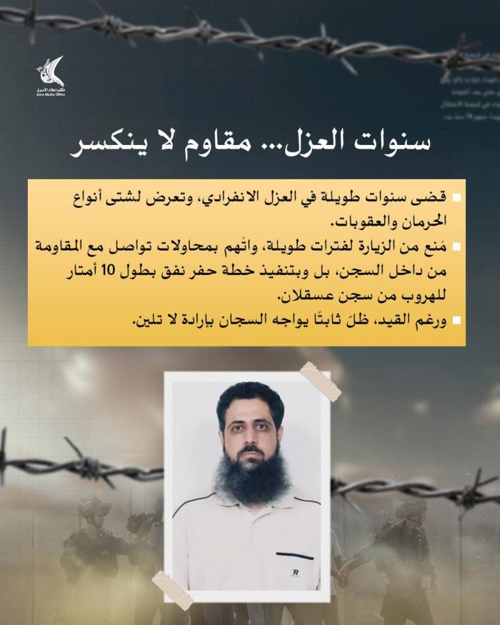 منذ 16 دقيقة يُحتجز الأسرى 23 ساعة يوميًا داخل الزنازين، ولا يُسمح لهم سوى بساعة واحدة في ساحة إسمنتية لا يرون فيها الشمس، ممنوعون خلالها من الحديث أو رفع رؤوسهم.