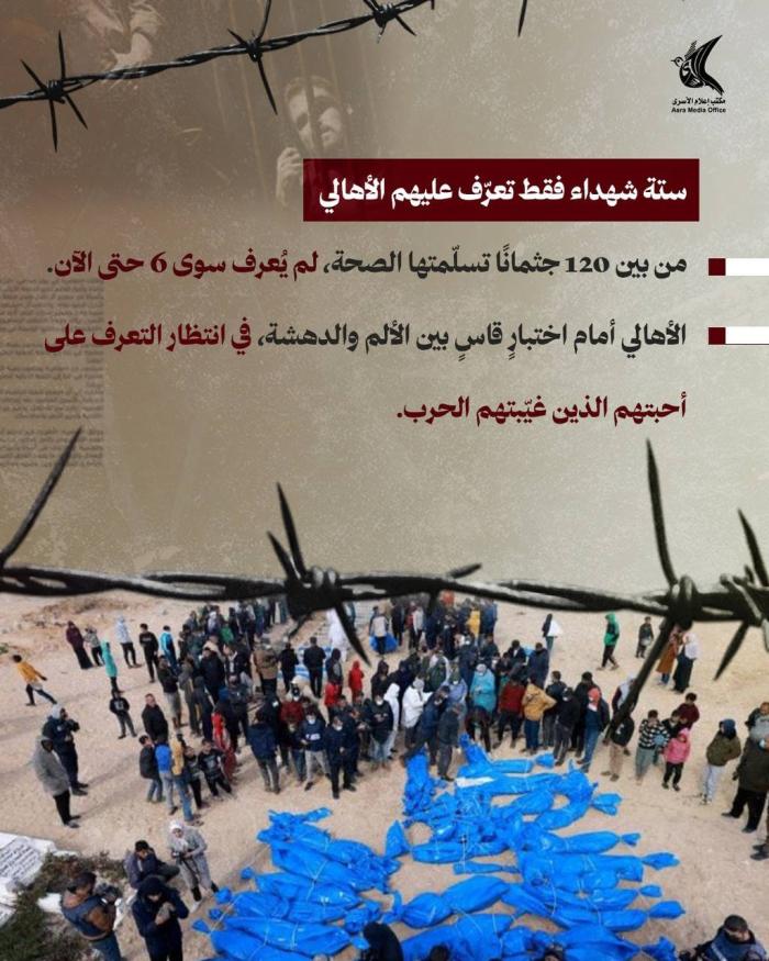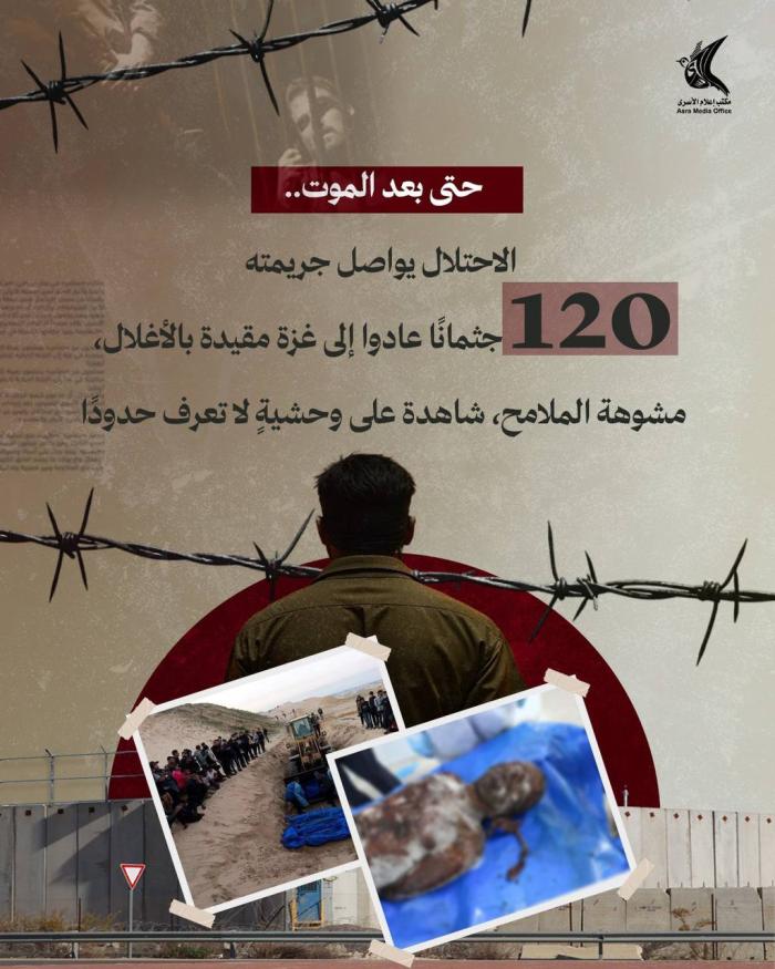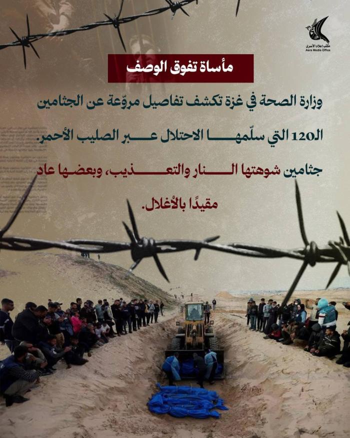 منذ 22 دقيقة تعذيبٌ نفسيّ متعمّد: على جدران الساحة تُعلّق صور دمار غزة مكتوب عليها: "غزة الجديدة"، في محاولة لكسر الروح المعنوية للأسرى وتحطيم ارتباطهم بالأمل.
