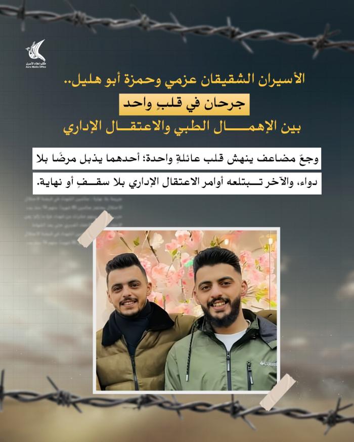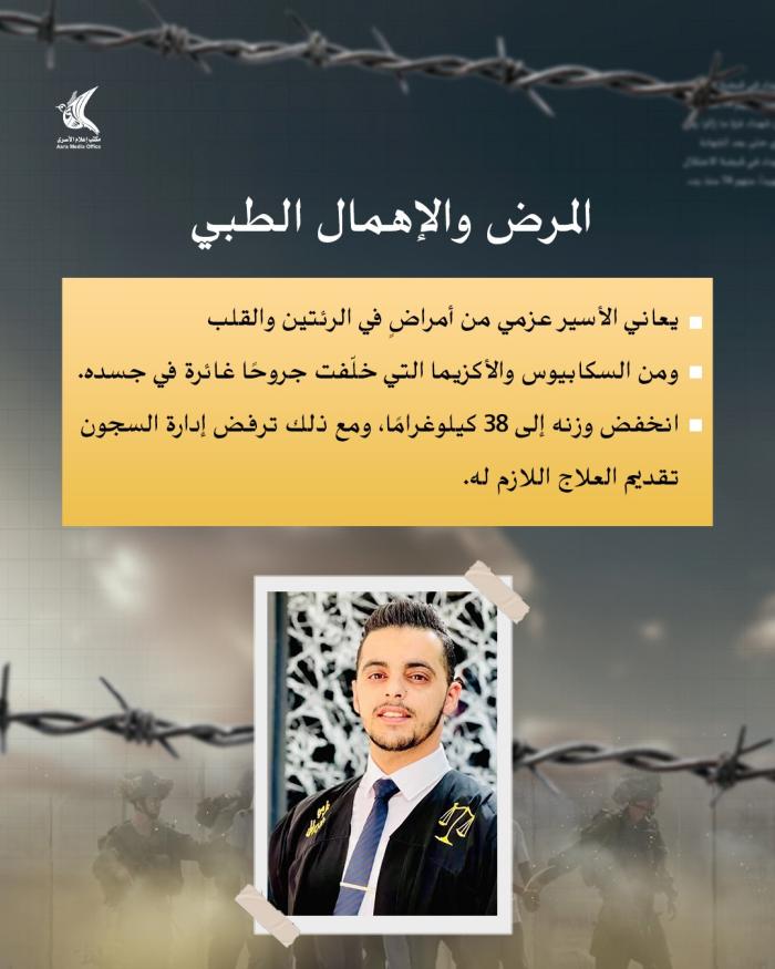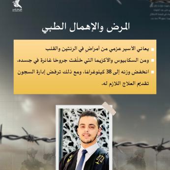 منذ 14 دقيقة المحرر المقدسي أيمن سدر: الإهمال الطبي المتعمد: غياب العلاج كلياً حتى لمسكن بسيط مثل "أكامول"، وتجاهل حالات نزيف خطيرة حتى الموت
