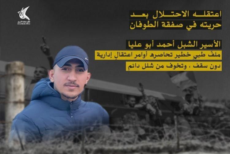 بدوره، حمّل مكتب إعلام الأسرى إدارة سجون الاحتلال المسؤولية الكاملة عن حياة الأسير أحمد أبو عليا وصحته، في ظل استمرار الإهمال الطبي بحقه وتعرضه المتكرر للضرب رغم إصاباته البالغة.