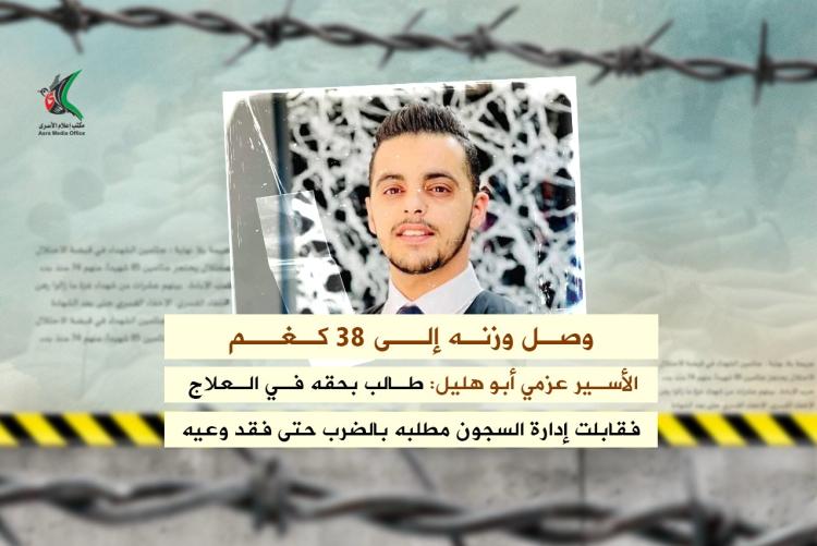 الأسير عزمي نادر عزمي أبو هليل (30 عاماً) من بلدة دورا قضاء الخليل، شاب ذو خلفية تعليمية يُرفع لها القبّعات. إنسان شقّ طريقه نحو العلم، فنال درجة البكالوريوس، ثم الماجستير في الاستشارات القانونية خلال دراسته في المغرب، وكان بصدد استكمال دراسة الدكتوراه. لكن الاعتقال باغته عبر وحدات خاصة واقتحام، ومحاكم لا تعرف العائلة سقفها الزمني بعد. وفي غضون عشرة شهور فقط من اعتقاله أصبح وزن الأسير عزمي أبو هليل لا يتجاوز 38 كغم.