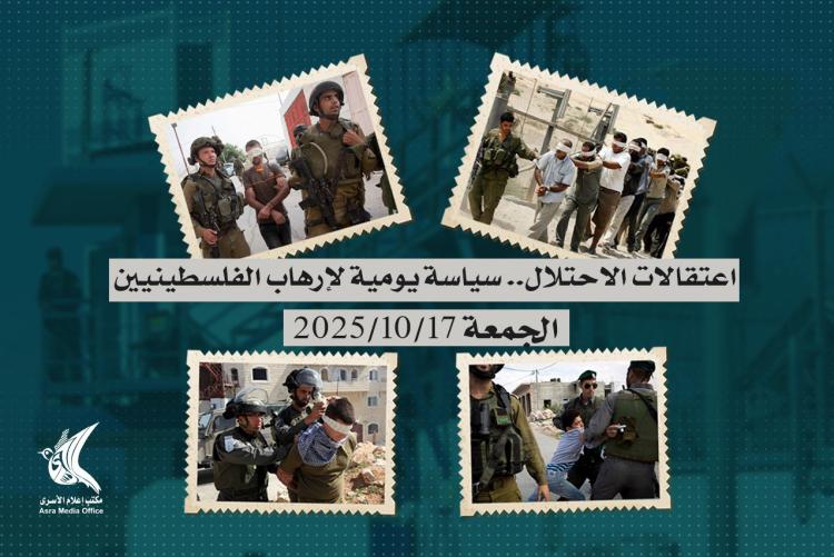 شنت قوات الاحتلال الإسرائيلي فجر وصباح اليوم الجمعة، 17 تشرين الأول/أكتوبر 2025، حملة اعتقالات واسعة في عدد من محافظات الضفة الغربية، تخللتها مداهمات للمنازل وتفتيش وتخريب لمحتوياتها.