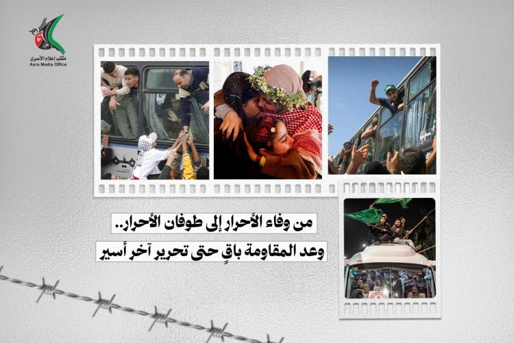 وأكد إعلام الأسرى أن المقاومة وفّت بوعودها تجاه الأسرى، وأن كل صفقة تبادل أعادت الأمل للأهالي، وجعلت وعد الحرية قائمًا حتى تحرير جميع الأسرى، مشددًا على أن كتائب القسام والفصائل المقاومة ماضية في طريق الدفاع عن حقوق الأسرى وتحقيق تبييض كامل للسجون.