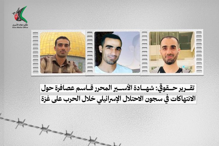 يوثق هذا التقرير شهادة الأسير المحرر قاسم عصافرة من بلدة بيت كاحل بمحافظة الخليل، والذي تحرّر ضمن الدفعة الثالثة من صفقة "طوفان الأحرار" بعد أن أمضى ست سنوات في سجون الاحتلال الإسرائيلي، محكومًا بالسجن المؤبد.