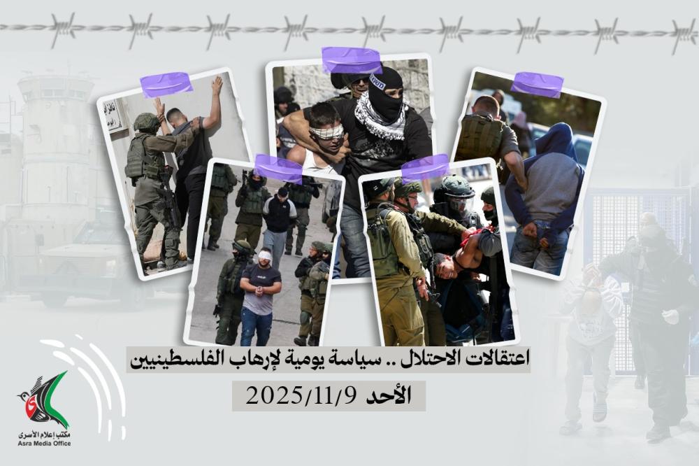 شنت قوات الاحتلال الإسرائيلي، فجر اليوم الأحد 9 تشرين الثاني/نوفمبر 2025، حملة اعتقالات واسعة طالت عدداً من المواطنين في محافظات الضفة الغربية المحتلة، بينهم أسرى محررون وطفل، فيما واصلت حصارها لبلدة يعبد جنوب جنين لليوم الثالث على التوالي.