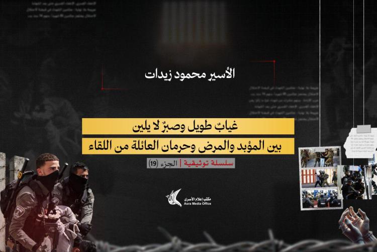 في سجن نفحة يقف محمود زيدات شامخًا، يقاوم السجن وذكريات العائلة التي تركها خلفه. اعتُقل بتاريخ 15/1/2024 مع ابن أخيه أحمد زيدات بتهمة تنفيذ عملية في الداخل المحتل، وبعد عامٍ من الاعتقال صدر بحقهما حكمٌ بالسجن المؤبد و60 عامًا وغرامة مالية قدرها مليونَي شيكل.
